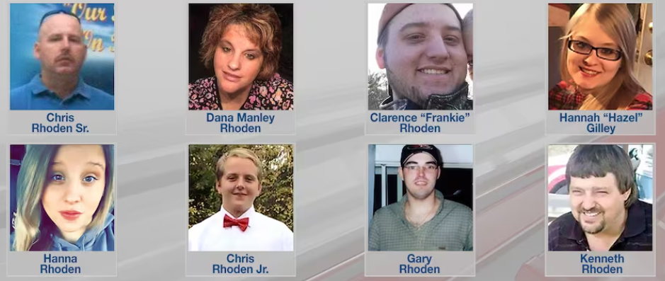 In the early morning hours of April 22, 2016, eight members of the Rhoden family were brutally murdered in their homes, spread over four crime scenes. The victims included Christopher Rhoden Sr., 40; his ex-wife Dana Rhoden, 37; their three children, Clarence “Frankie” Rhoden, 20, Hanna Rhoden, 19, and Christopher Rhoden Jr., 16; Christopher Sr.’s brother Kenneth Rhoden, 44; their cousin Gary Rhoden, 38; and Frankie’s fiancée, Hannah Gilley, 20.